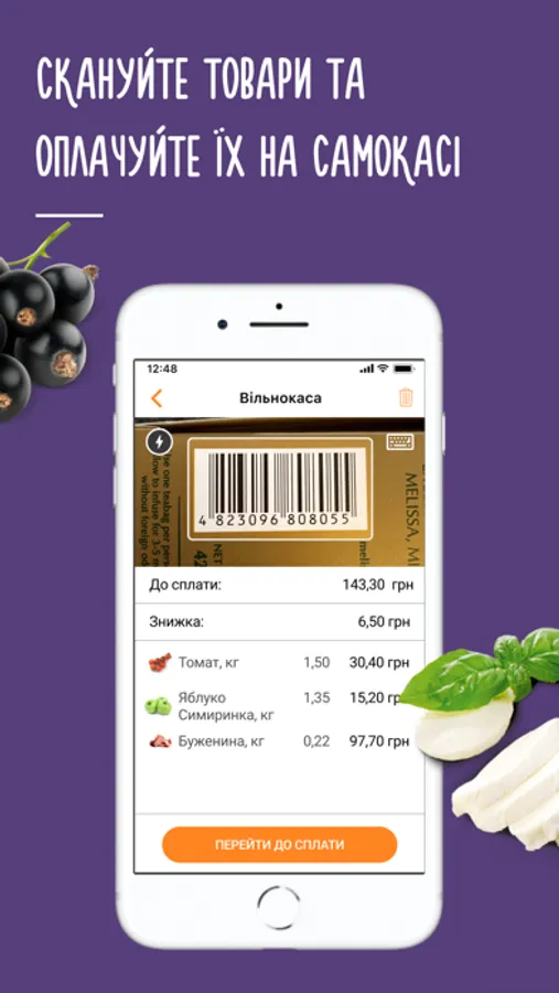 Купуйте ще швидше з «Вільнокасою»! Скануйте штрихкоди за допомогою вашого смартфона під час шопінгу у супермаркеті та додавайте товари в кошик. Оплачуйте покупку на Самокасі одним рухом.