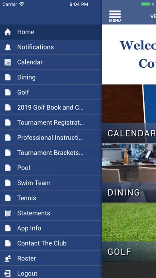 Vesper Country Club, Tyngsboro, MA. Provides members with the ability to view calendar & statements, make reservations, receive notifications on upcoming pool/tennis/social/golf events all by the way of your handheld device or tablet.