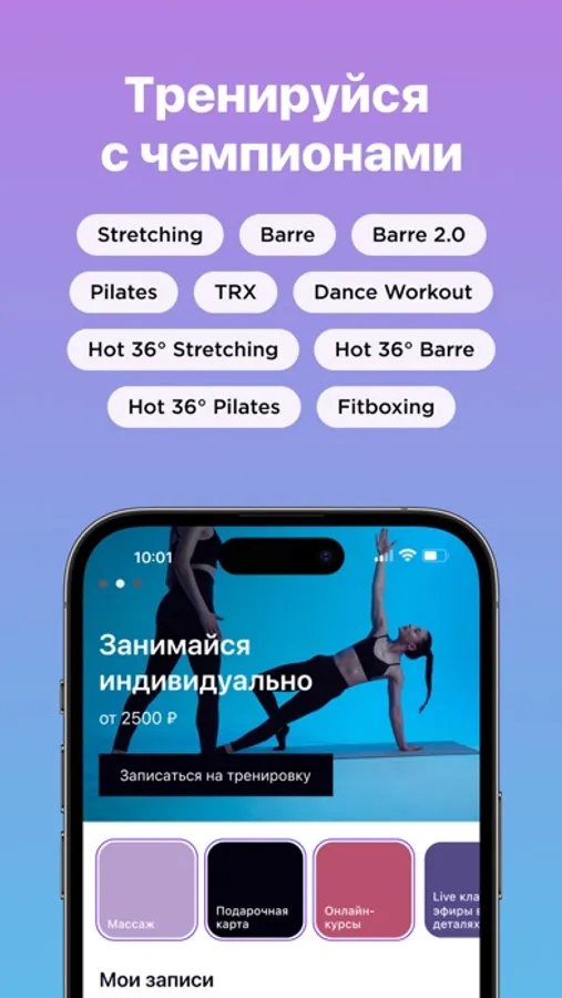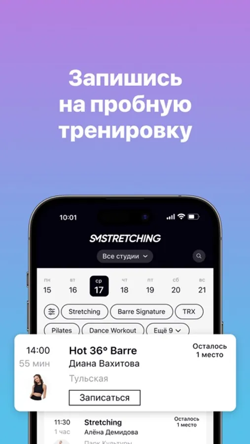 Записывайся на классы, узнавай о новых тренерах и акциях студий через приложение SMSTRETCHING.