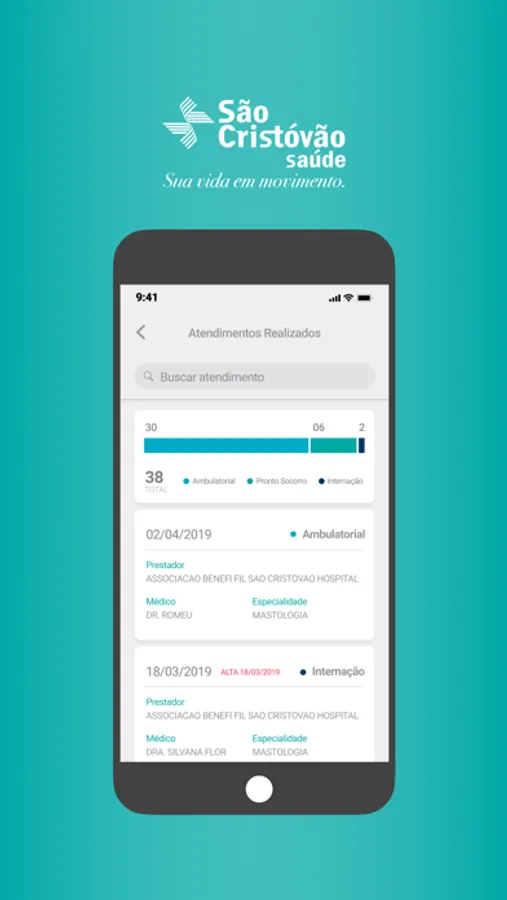 - Check-In para consultas ambulatoriais (você confirma sua própria consulta direto no app, dispensando filas);