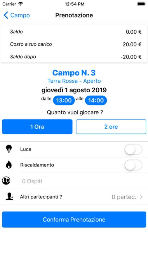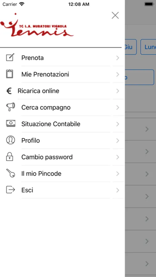 App personalizzata per la prenotazione dei campi del Tennis Club Muratori Vignola - Modena
