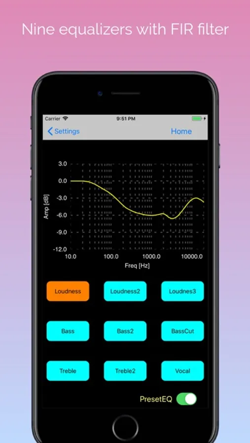 PresetEQ is special equalizer by audio engineer.Realize stable sound using FIR filter.