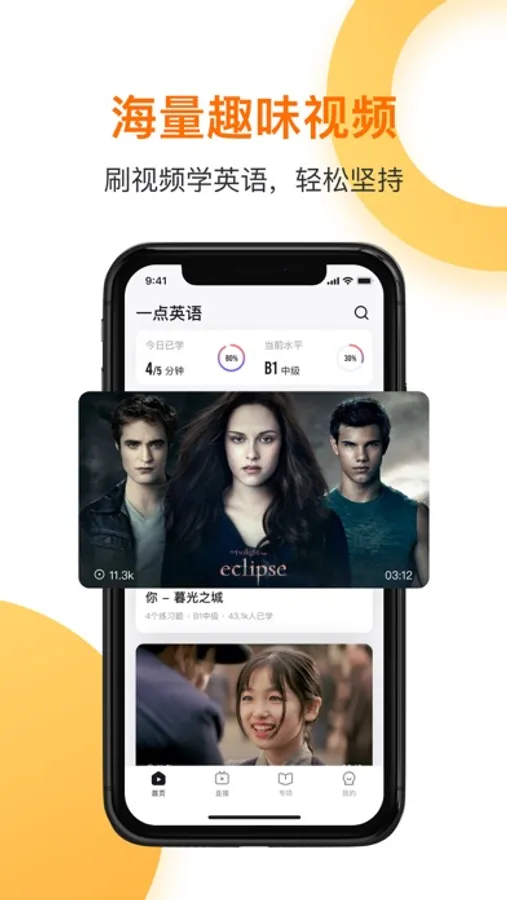 影视原声跟读,AI系统进行评分,实时反馈学习效果,练就一口地道口语。视频互动区支持语音评论,提供口语交流平台。