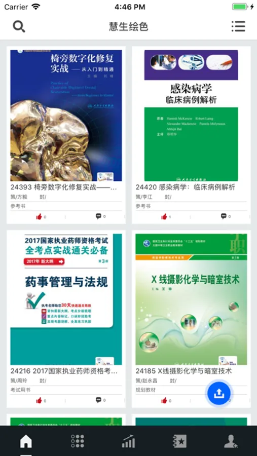 慧生绘色是为人民卫生出版社集团企业内部打造的应用App,该应用同慧生绘色web端进行交互。欣赏功能:展示付型封面、展示备选封面、佳作分享、介绍国内外优秀书籍设计的相关图文、设计者说。交互功能:产品追溯、为用户提供点赞、评论、评分、查看详情页等功能。知识普及功能:知识分享、部门风采、法律法规等。搜索功能提供各模块中内容搜索。用户中心展示个人信息,包含:个人名下图书、个人的分享、关注的用户三个小模块,点击已关注用户可进入被关注者的空间,不同的角色拥有不同程度对他人空间的查看权限。