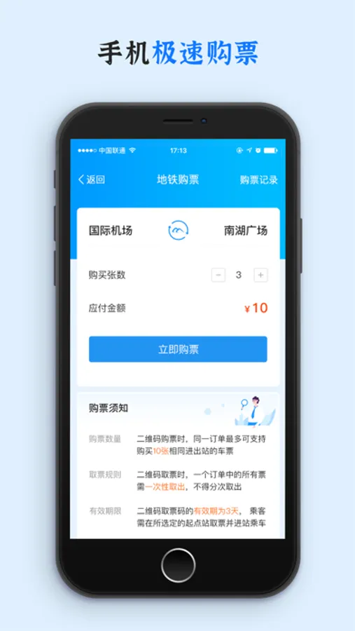 地铁购票——乘客可通过乌鲁木齐地铁APP进行线上购票,可在各车站ITM(综合票务机)上取票。真正实现“线上购票、车站取票”的手机购票新方式。