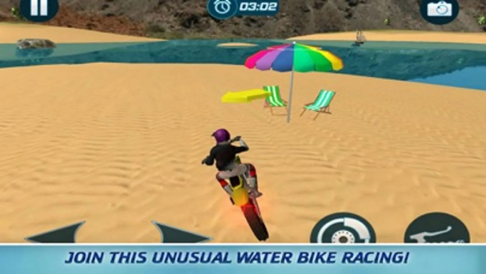Beach Bike Water: Challenge Racing is all about stunt and race in an ultimate thrilled race to ride and overcoming many hurdles on the way. The beach bike surfing game involves extravagant and most thrilled heavy bike stunts on the beach as well as on water. Enter the waving surf jet ski area to turn your motocross racers’ bike ride into a beach-boat.