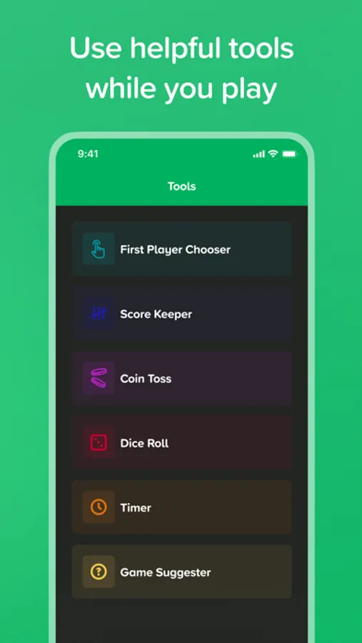 Cardboard Companion has a number of handy tools to use while you play. Our first player chooser, scorekeeper, coin toss, dice roll, and timer have your gameplay covered. Spend less time opening different apps and more time focusing on the game.