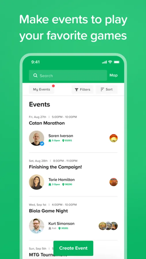 With events, you can plan your next game night with your gaming group or find some new friends to play with. Is there a new game out you’ve been hoping to try but haven’t purchased? Find a group near you playing that game! Or, host your own event and make it public, approval-based, or completely private. There are lots of ways to play with Cardboard Companion and events.