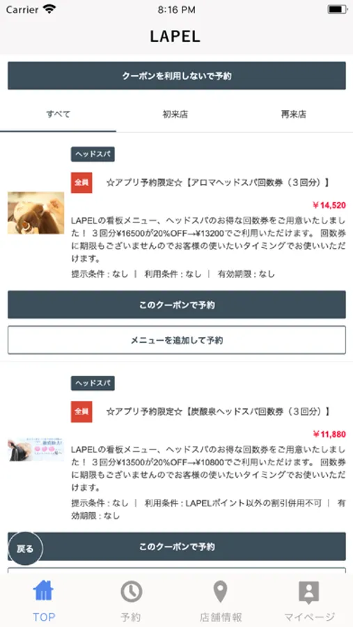 お得なクーポンが配信されます。ネット予約時にクーポン利用での予約も可能なので来店時もスムーズに施術頂けます。