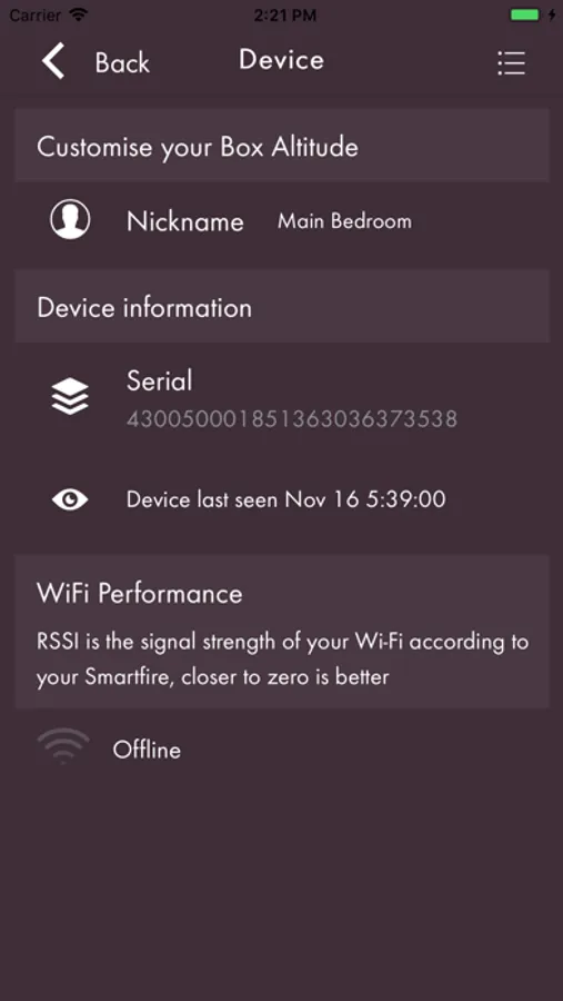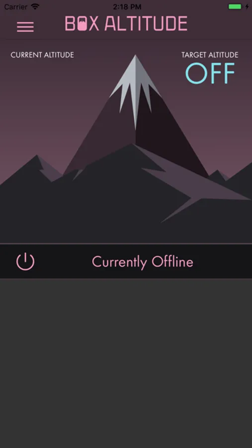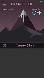 This app provides the control interface to the Box Altitude room solution. You can view the current room environmental - altitude, oxygen, temperature and humidity. You can set your target altitude and enable or disable the controller.