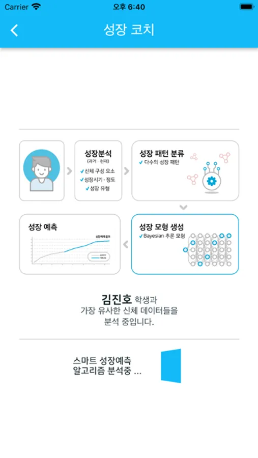 2018년 신규 서비스로 시작하는 스마트성장예측 시스템은 지난 5년간 2만7천여 명의 아동 청소년들에게 얻은 신체데이터 30만 건을 토대로 독자적인 성장기 청소년의 데이터 수집과 고유 분석을 통해 성장예측 서비스를 선보이게 되었습니다.