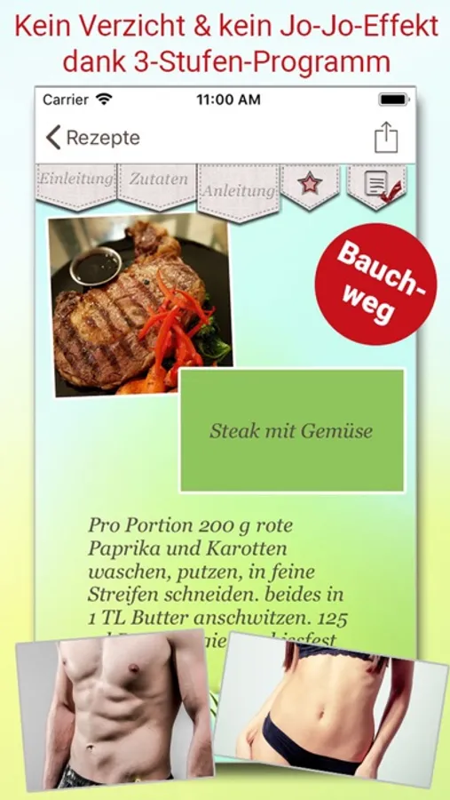 Und so einfach geht's: Zunächst werden Sie an zwei Entschlackungstagen mit Saft und Suppe auf den nachhaltigen und gesunden Fettabbau eingestimmt. Und dann heißt es für Sie schlichtweg: Wählen Sie zwei Mal täglich aus einfachen, aber super leckeren Abnehm-Rezepten aus. Bis zu fünf Kilo sind in zehn Tagen möglich. Und wer noch mehr abnehmen will, verlängert die Diät ganz einfach. Genügend Abnehm-Gerichte stehen schließlich zum Ausprobieren zur Verfügung.