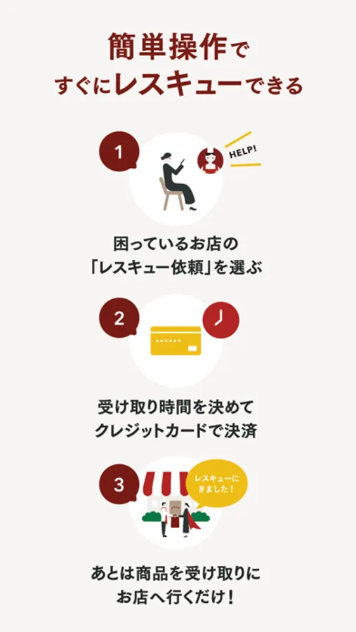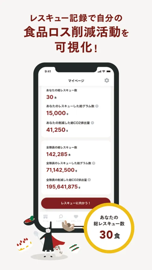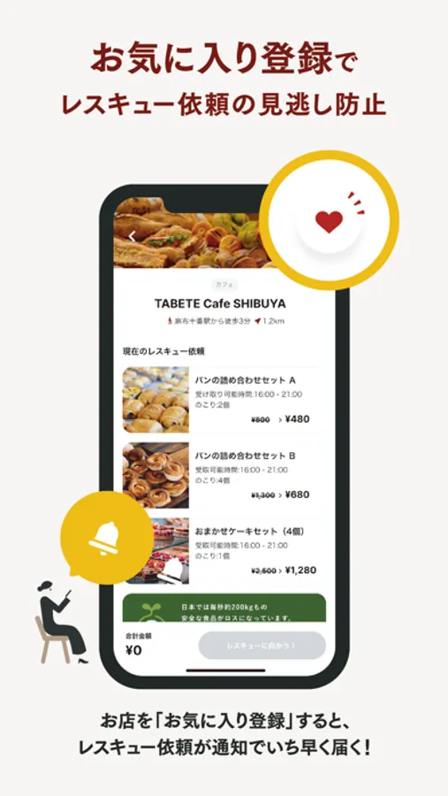 ・食事が余って困っている飲食店、お惣菜店、パン屋さん、お菓子屋さんなどから、食事を「レスキュー」できる!