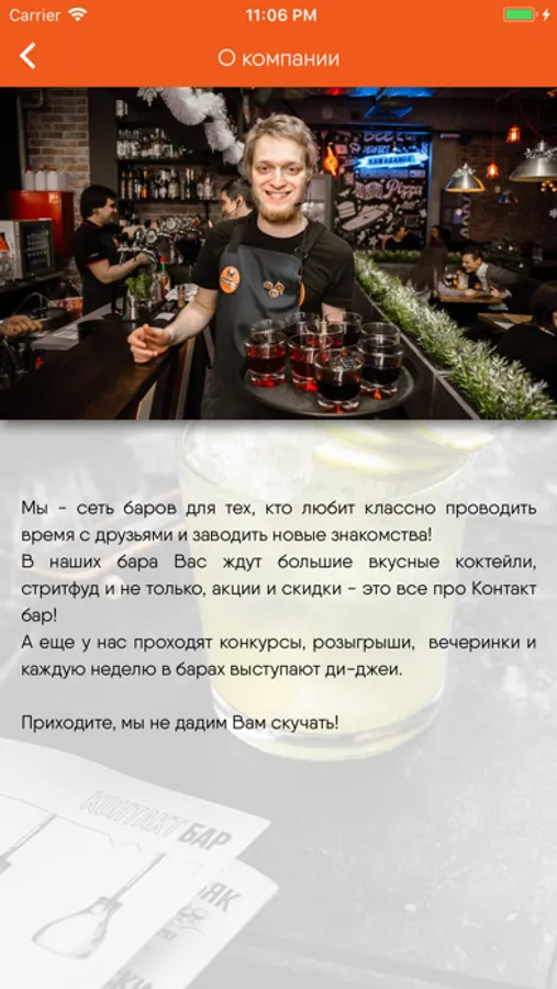 Контакт Бар – это не просто бар, это место, куда Вам хочется возвращаться снова и снова.