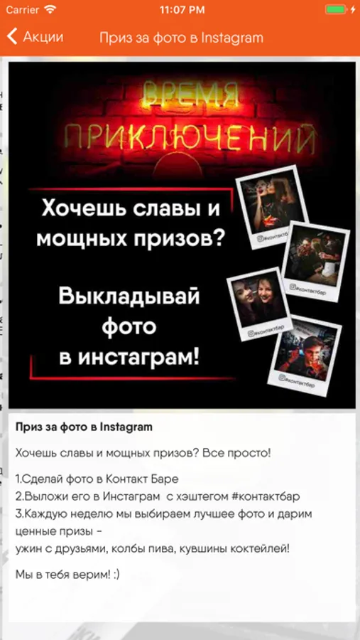 • первыми узнавать обо всех ивентах и мероприятиях в барах