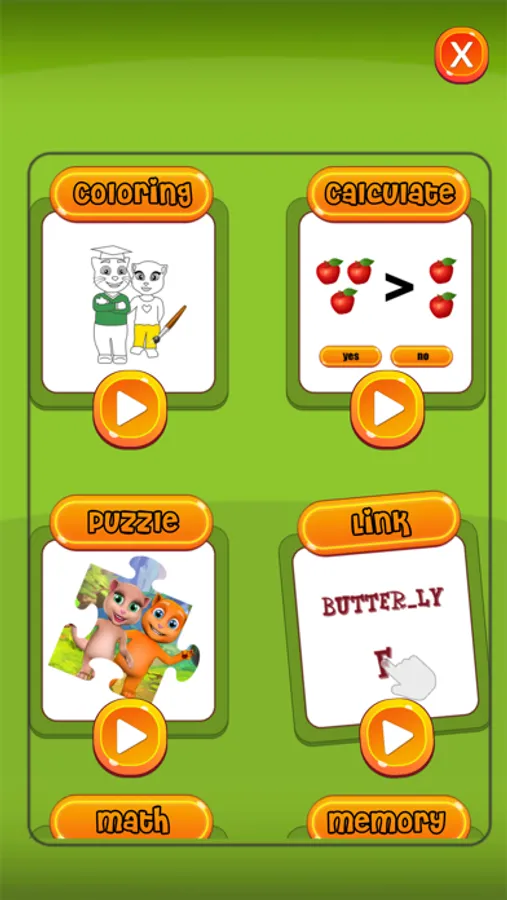 Memory games are great games, which help develop memory skills of children. This adorable memory game contains very cute images of animals, fruits,etc., which are on memory cards. Playing this matching games with children will help them improve their recognition while having fun. These memory games are games for everyone - preschoolers, school children and teens. Have fun to play with our matching games!