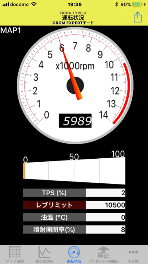 This application can be downloaded for free. When it is free, you can connect with all FI - CON TYPE - X, but only the tachometer screen is displayed. (Only tachometer and TPS are displayed).