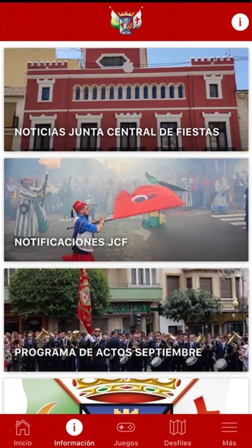 Accede a toda la información actualizada sobre nuestras fiestas: noticias, actos, comparsas, escuadras especiales, etc. Consigue puntos y regalos en los juegos propuestos. En el apartado desfiles podrás acceder a la información en tiempo real, mediante tecnología GPS, de los desfiles principales. También puedes guardar tus favoritos, ver la TV en directo, cambiar idioma, etc. Utiliza el buscador de la página Inicio si necesitas hallar información rápidamente o relacionada con algún tema de tu interés.