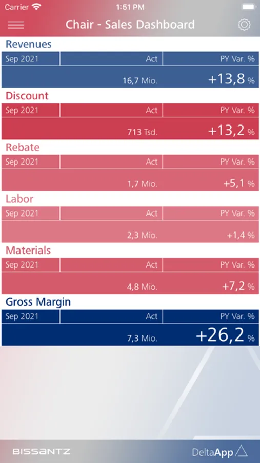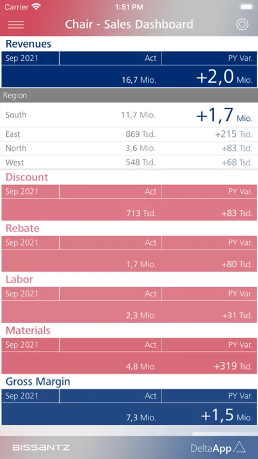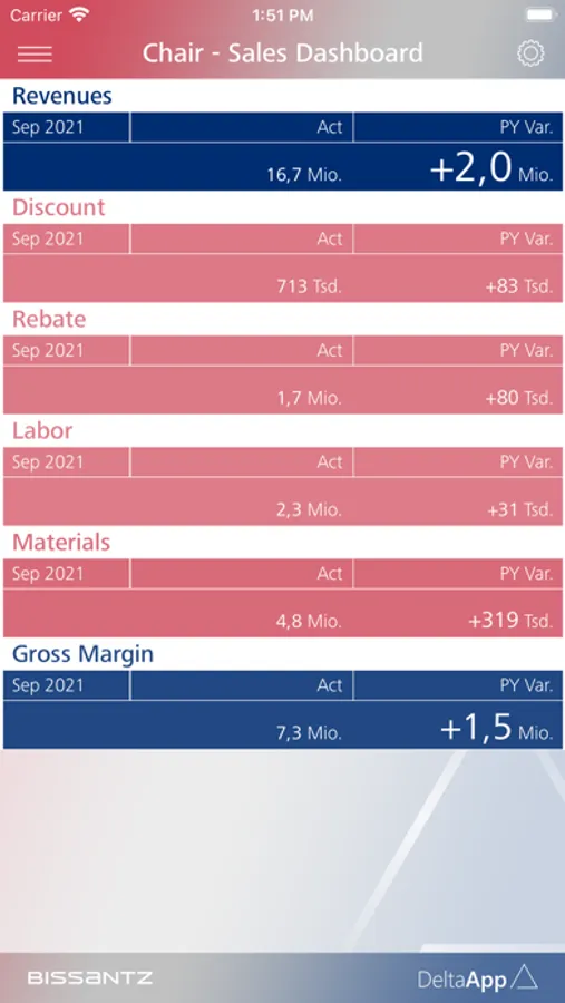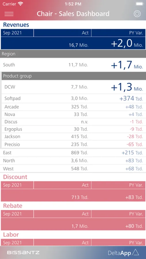 Working with data can be as natural as making a phone call – with Bissantz DeltaApp. It integrates data navigation, variance analysis, and KPI comparison in a concise and simple manner.