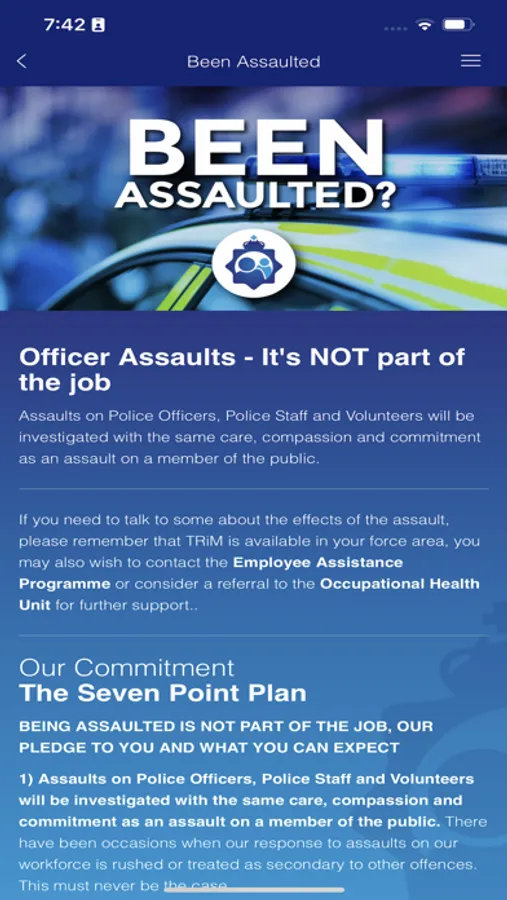 The App covers a range of problems faced by officers and staff in the Police service, such as anxiety, stress, PTSD (Post Traumatic Stress Disorder), depression, eating disorders, self-harm and more. It gives practical advice and support on how officers can maintain good mental health, spot warning signs for themselves and others, plus advice on how to get help for themselves and colleagues.