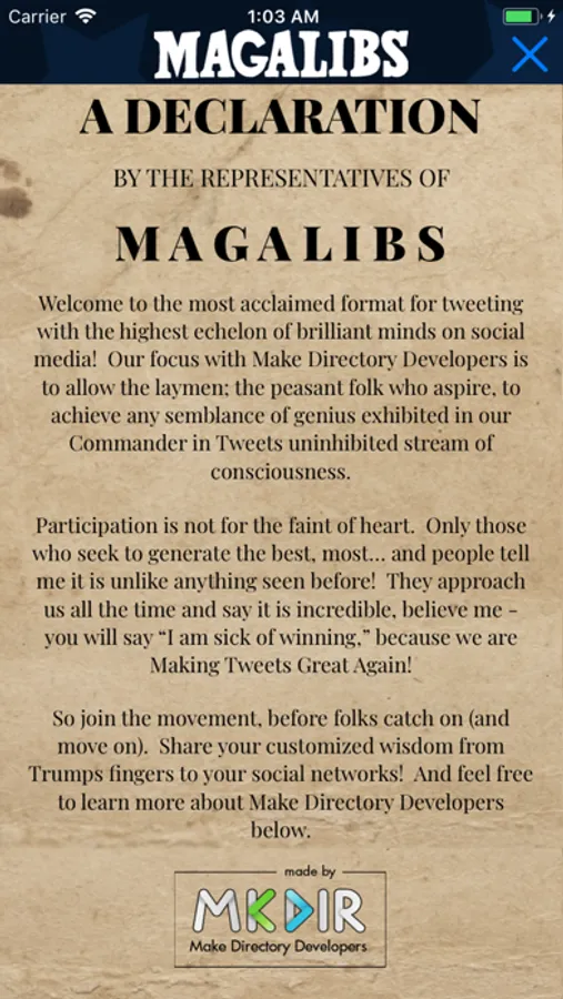 So join the movement, before folks catch on (and move on). Share your customized wisdom from Trumps fingers to your social networks! And feel free to learn more about Make Directory Developers below.