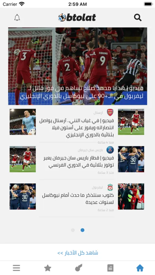 تطبيق btolat سيتيح لك متابعة اخر اخبار كرة القدم في تغطية خبرية شاملة لأكثر من 55 بطولة عربية ومحلية واوروبية ودولية كما يوفر لك اخر اهداف وملخصات ولقطات مباريات كرة القدم حول العالم.