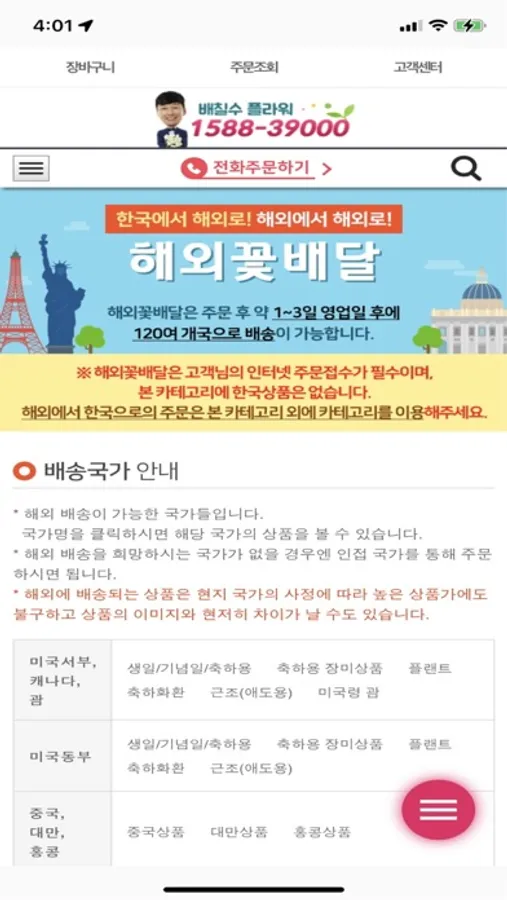 해외 →> 한국 양방향 꽃배달서비스 안내
