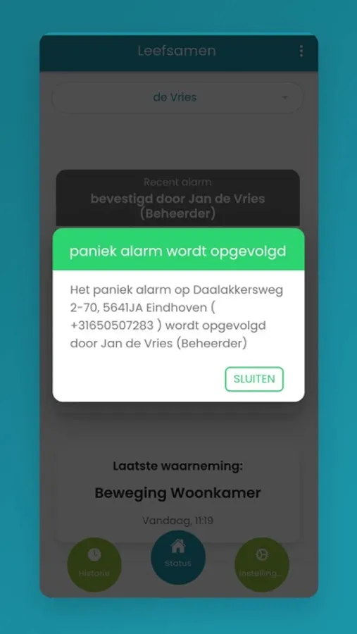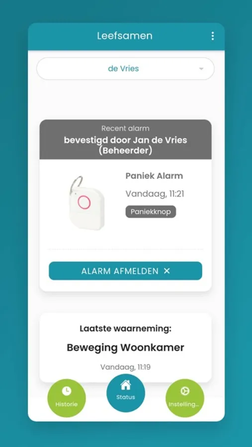 De slimme sensoren in de woning van de persoon waar u voor zorgt staan via internet in verbinding met het Leefsamen platform. Zo ontvangt het sociale netwerk (kinderen, buren, of andere mantelzorgers) meteen een melding zodra bij de persoon waar u voor zorgt het alarm afgaat.