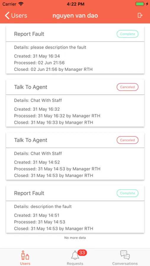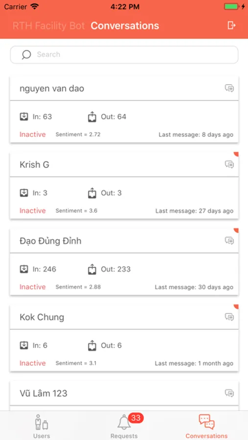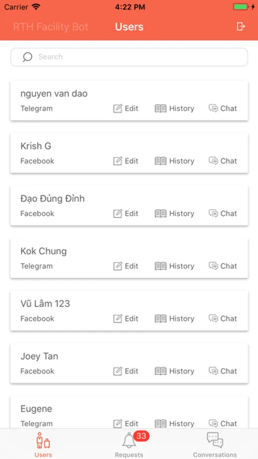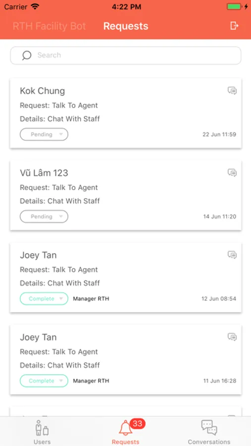 A companion mobile app for the FacilityBot. This mobile app allows facility management staff to be alerted to and respond to requests from FacilityBot while on the move. This mobile app also allows facility management staff to chat with users who have reported faults in the facility.