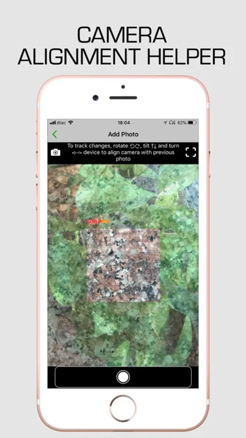 For best results, your photos should be aligned and the app helps you adjust the camera position as you take photos with on screen hints. Once you are "in the green", simply bring the camera closer until the camera feed aligns with the previous photo.