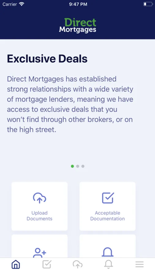 The Direct Mortgages mobile app allows you to communicate directly with one of the UK’s leading mortgage brokers, giving you direct access to your dedicated Mortgage Advisor, during your mortgage application. Through the app, you can discuss any requirements and also track the progress of your mortgage application from your mobile device remotely.