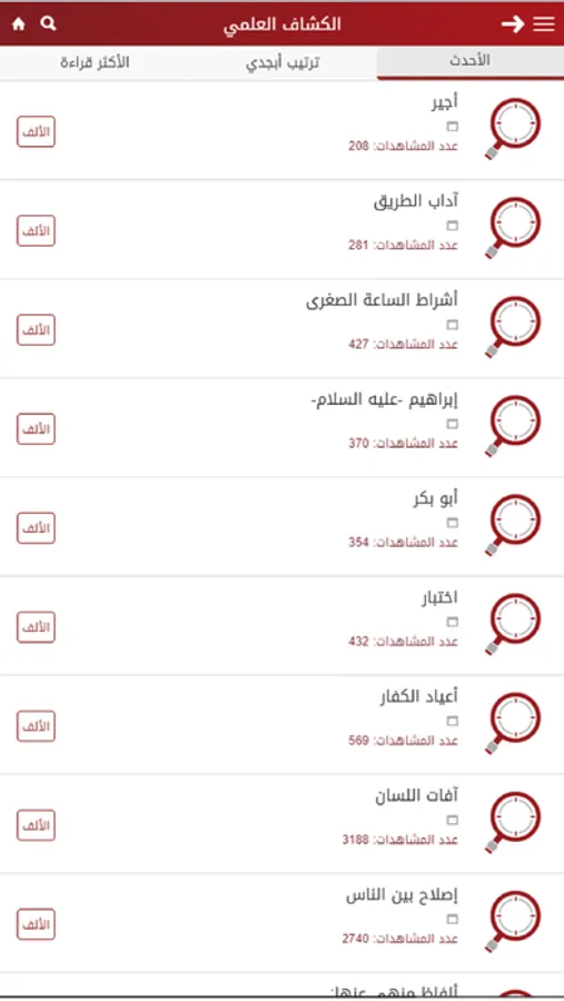 يمكنك من إستعراض دراسات دينية متعلقة بمواضيع ومصنفة بحسب الاحرف.