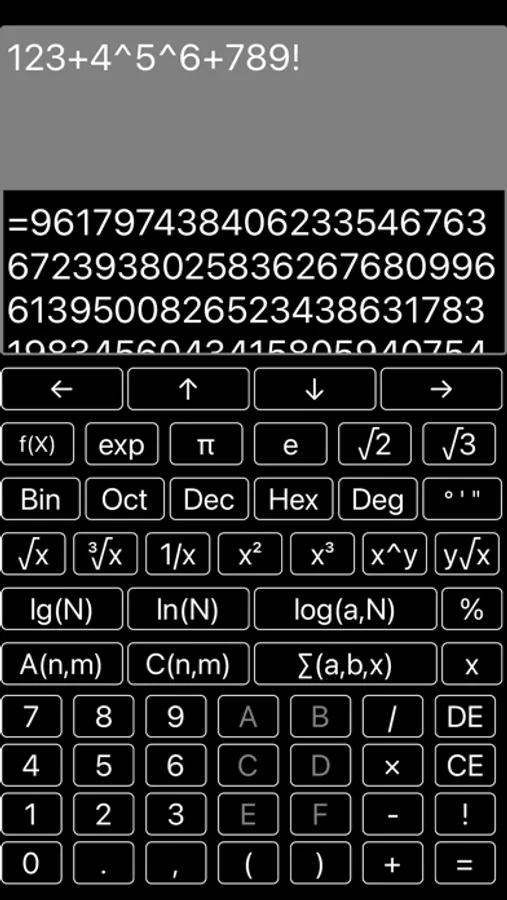 3. Support large number calculation function, up to 9999 factorial and 9999^9999 power.