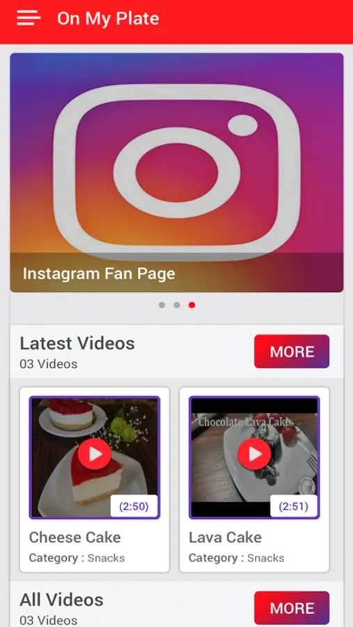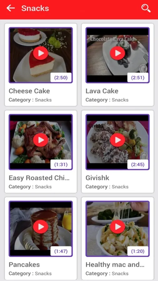 3. Choose the types of chosen meals and listing and play the demonstration.