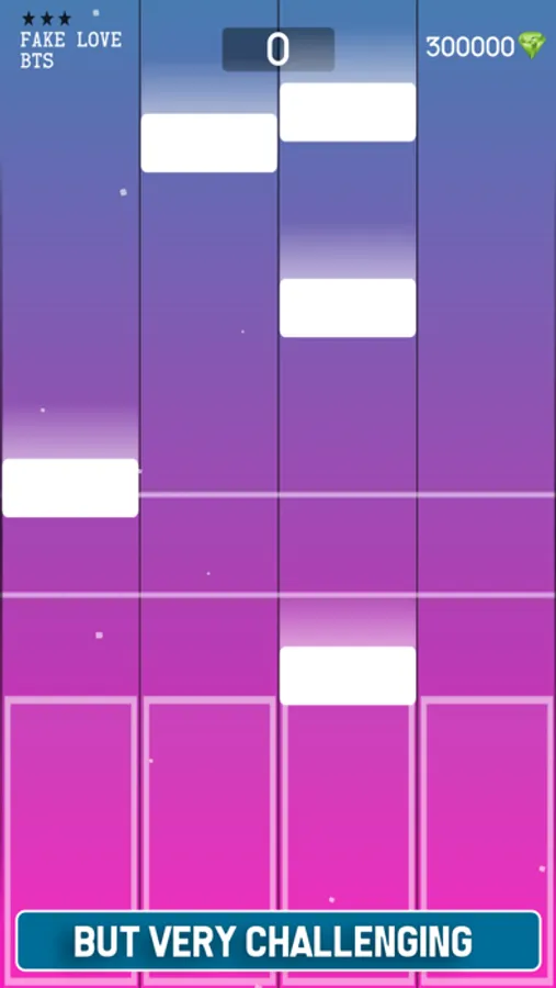 Tap on the piano key which are in row with the lowest white tiles and get many score and diamond as possible. You can use diamonds to unlock another songs.
