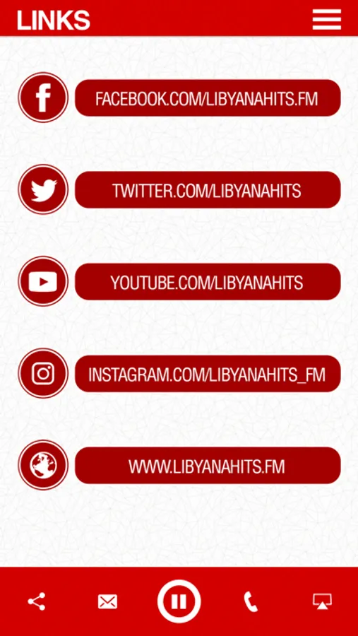 Support your local talent and become part of the music revolution taking place in Libya. Hear all the latest Libyan songs exclusively on Libyana Hits Radio app.