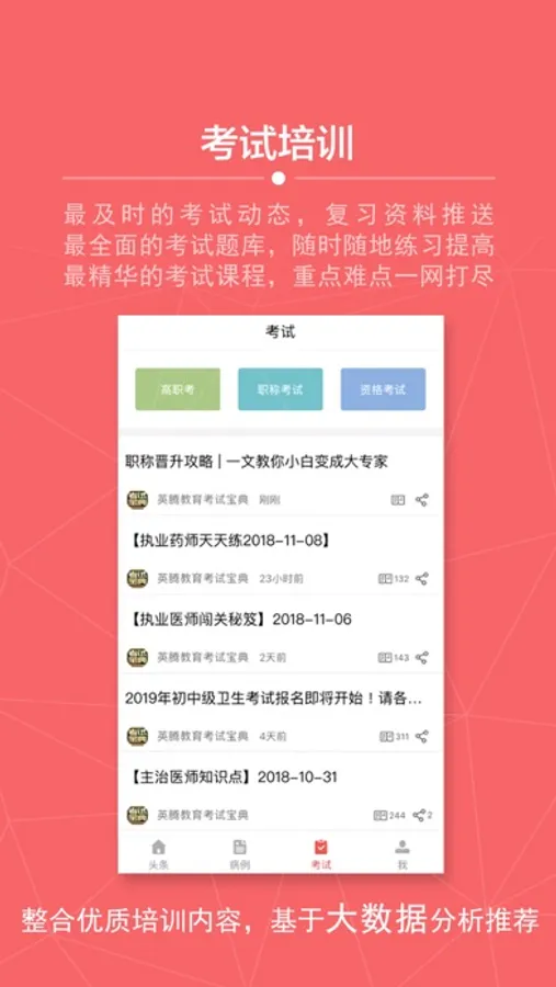 「学习」:模拟考试题库、期刊文献浏览、专家讲座视频,用碎片化时间打通晋级之路 「社区」:病例讨论、学术切磋,这里都有答案,您不是一个人在战斗