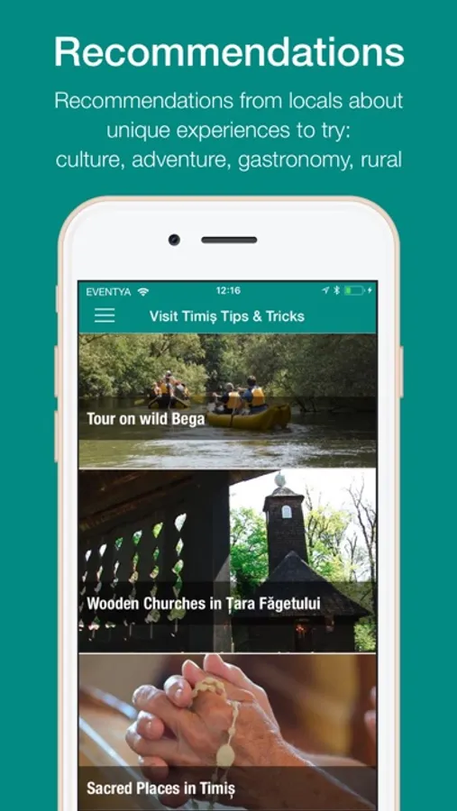 Ce experiențe deosebite poți descoperi în aplicație? Ture de aventură în natură, ture cu bicicleta, turism rural, ture de arhitectură în Timișoara, degustări și tururi în crame renumite, SPA-uri și ștranduri cu apă termală, destinații de balneoterapie și multe altele.