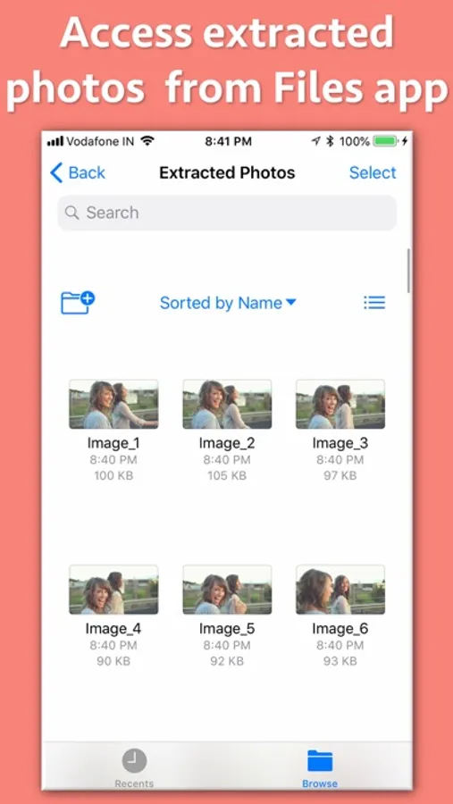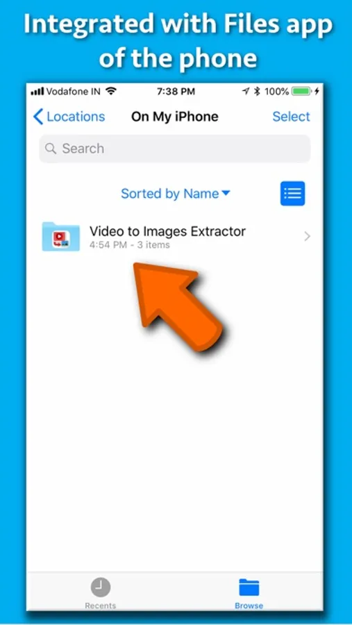 The application extracts high quality photos from a Video. It is tightly integrated with the "Files" application. All extracted photos could be accessed easily using the "Files" application.