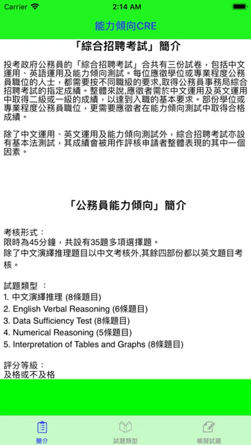 能力傾向測試CRE 包含了答題技巧,涵蓋中文演繹推理、English Verbal Reasoning、Data Sufficiency Test、Numerical Reasoning及Interpretation of Tables and Graphs的題目,詳盡答案解釋,極速提升考試能力,助你一擊即Pass!