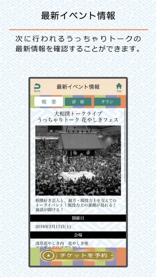 イベント開催日や場所、チケット料金など基本的な情報はもちろんのこと、