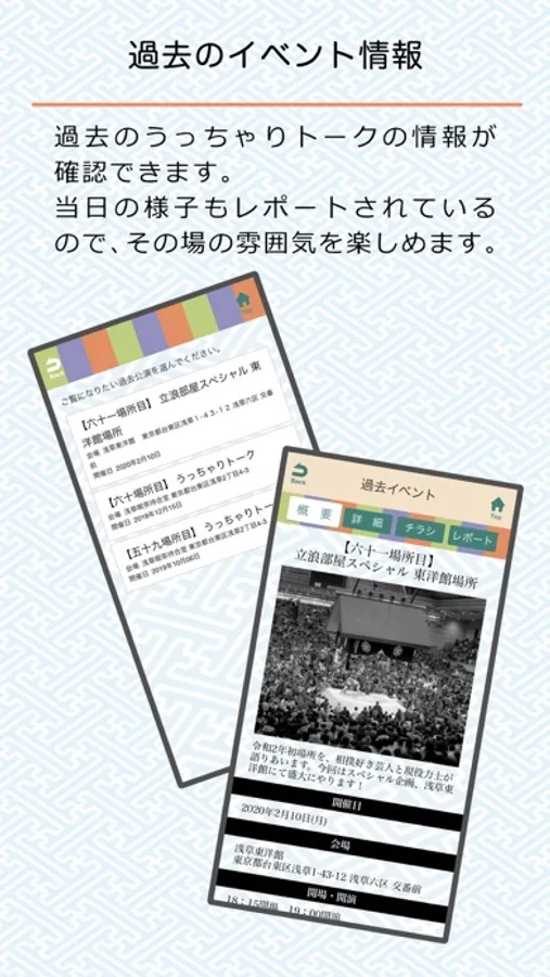 今までに行われたうっちゃりトークの情報を見ることができます。