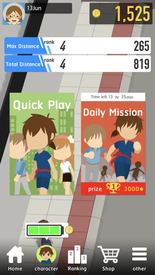 Simply control with one finger, push your character forward while avoiding all obstacles. Do not let people, trash can, broken pavement or anything gets in your way. Just keep walking and don't stop