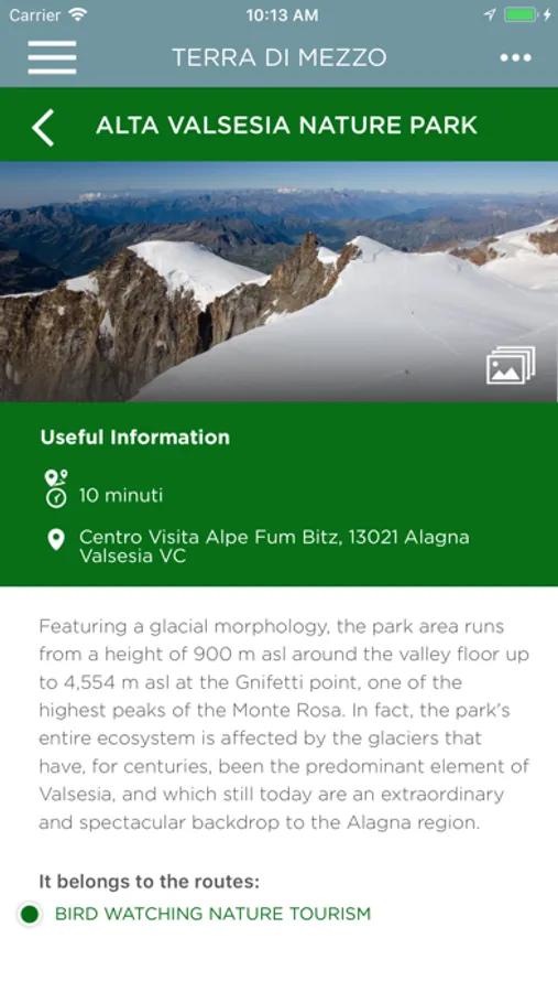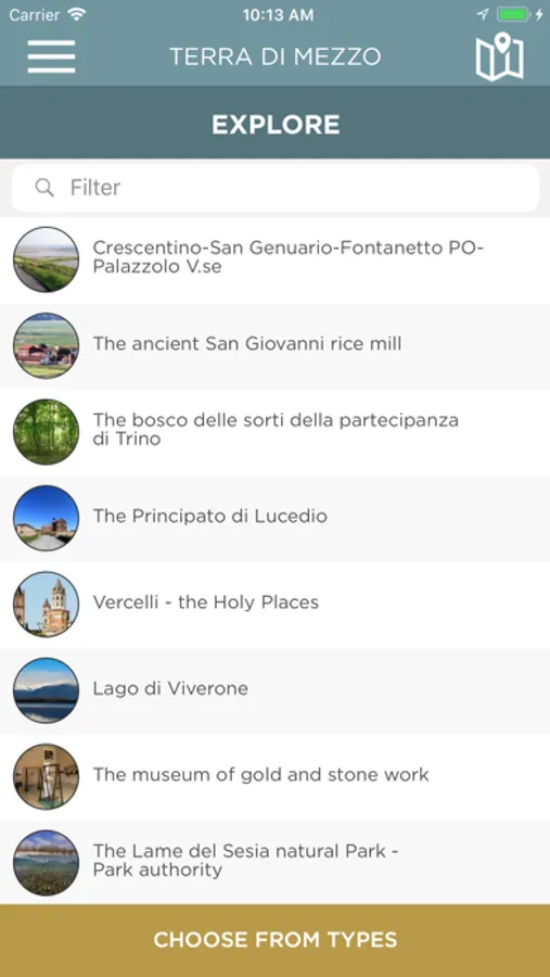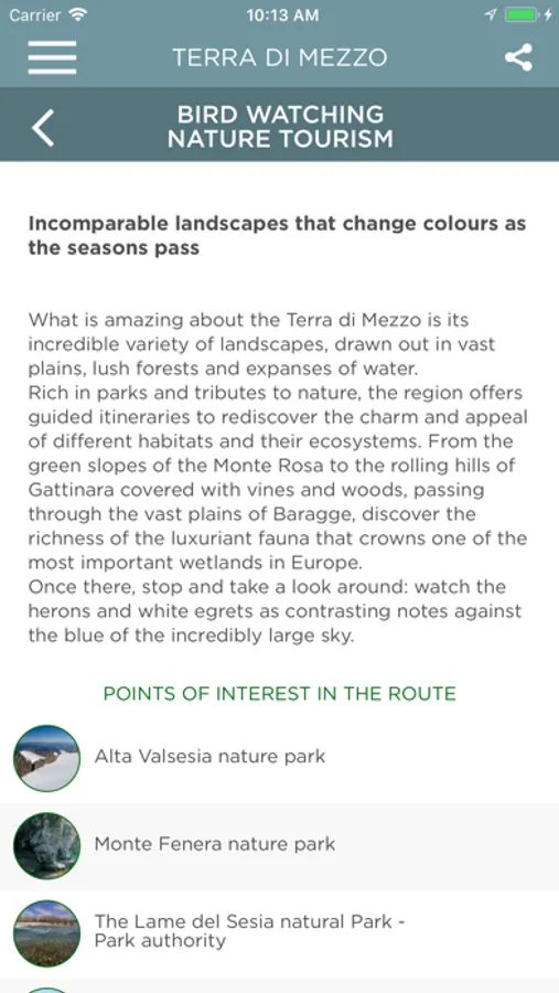 • Points of interest geo-localized on the map: monuments, churches, museums, natural parks.