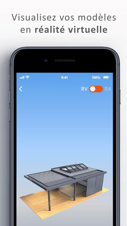 Créez et importez simplement vos modèles 3D. Accédez au mode réalité virtuelle (RV) ou au mode réalité augmentée (RA) pour manipuler vos modèles et les visualiser en taille réduite ou à échelle 1 directement chez votre client.