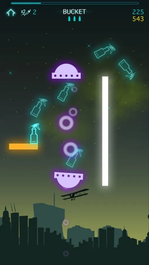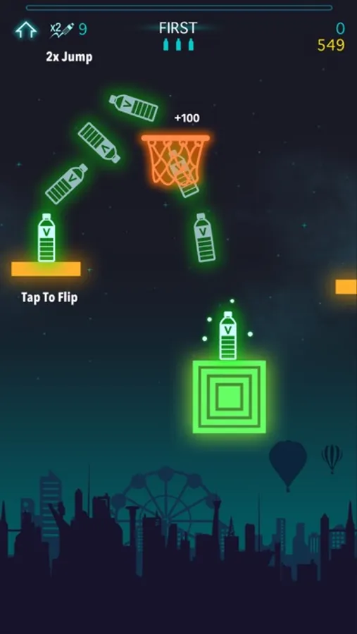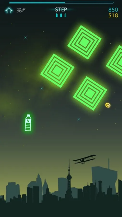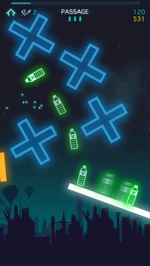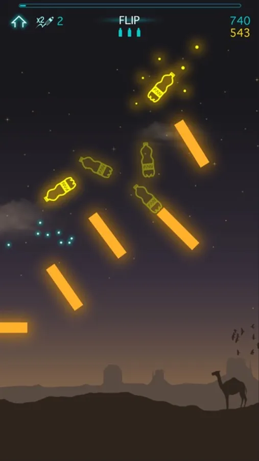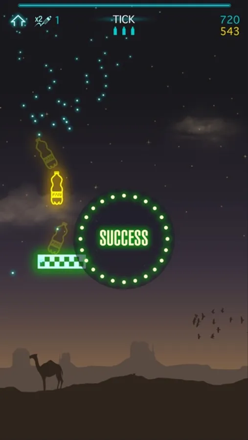 If you miss a just small landing, the bottle falls to the dark ground, and the game is over.