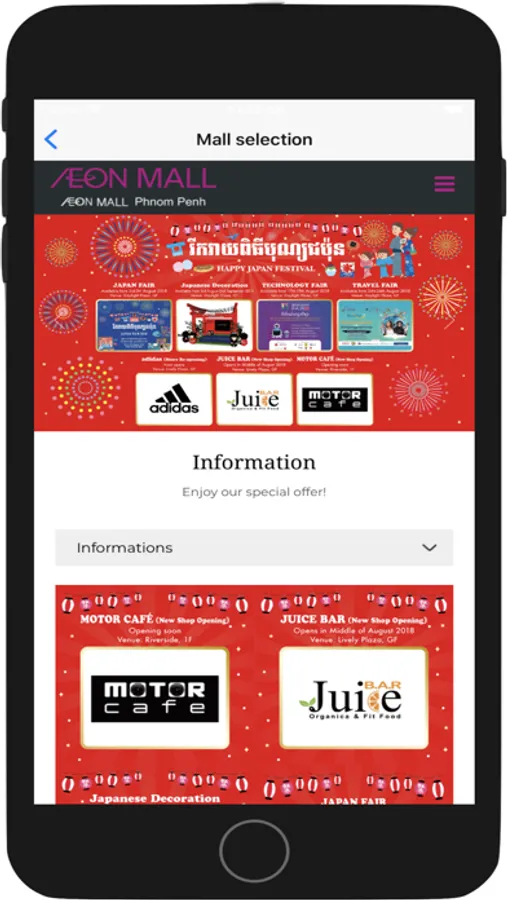 AEON MALL CAMBODIA Mobile App provide users with up-to-date information about everything related to AEON Mall in Cambodia such as:
