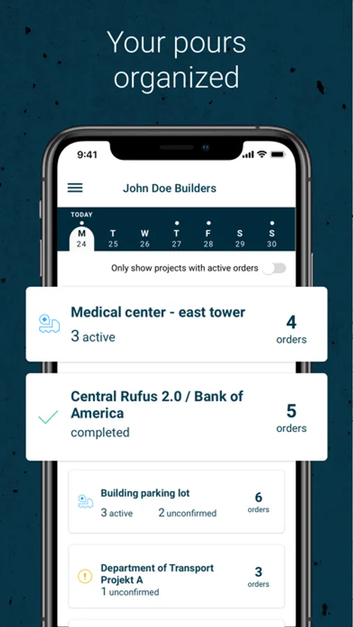 Plan the work ahead better. See which projects, job sites and orders are currently in progress or on the horizon.