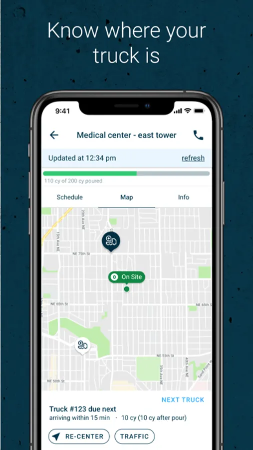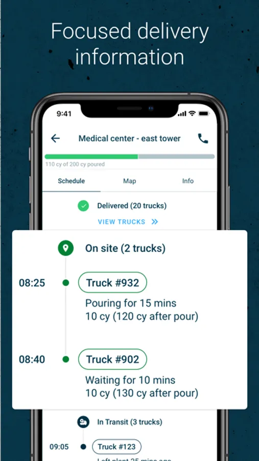Manage and track your concrete deliveries in real time with the OnSite app.