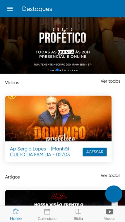 - Vídeos (palavras, louvores, pregações, matérias e divulgação de eventos);